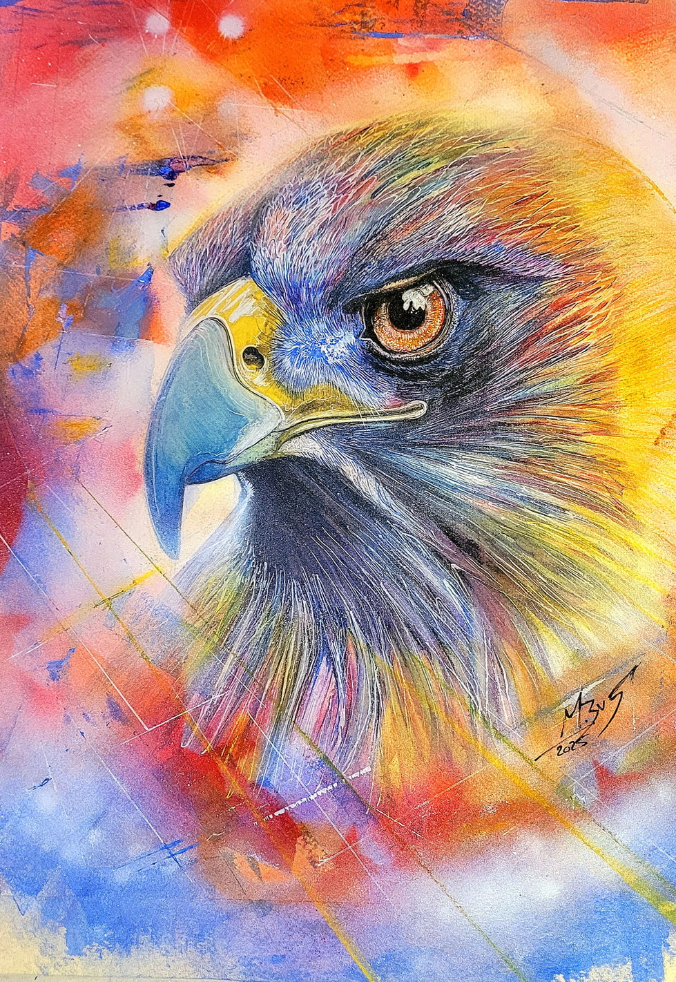 Vibrant and detailed animal portraits with expressive features and abstract backgrounds. These colorful artworks capture the intense gaze of a tiger, the majestic presence of an eagle, and the playful nature of a raccoon.