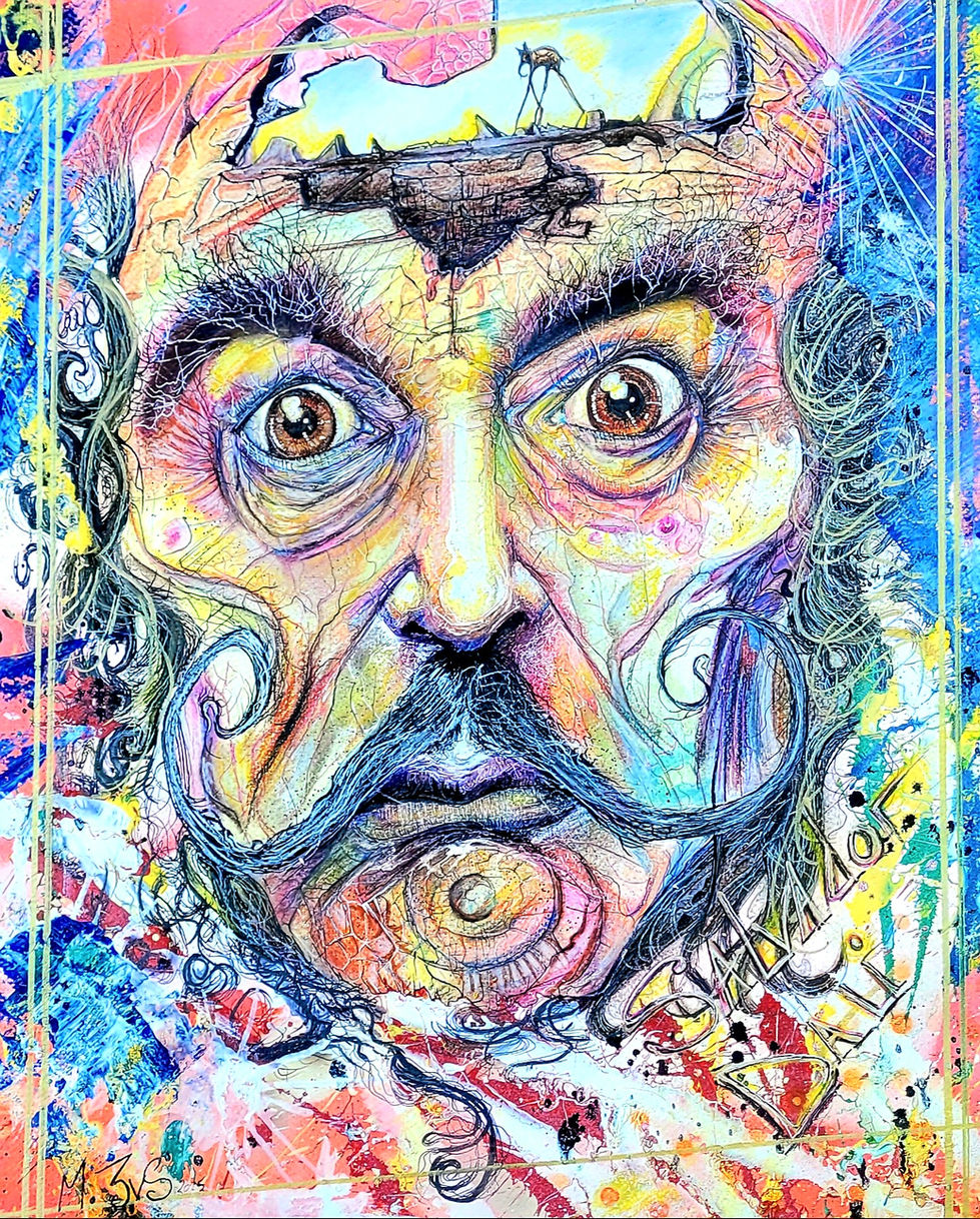 Surreal and vibrant artistic expressions capturing intense and expressive features. These colorful artworks showcase surreal portraits with swirling patterns, expressive eyes, and surreal elements.